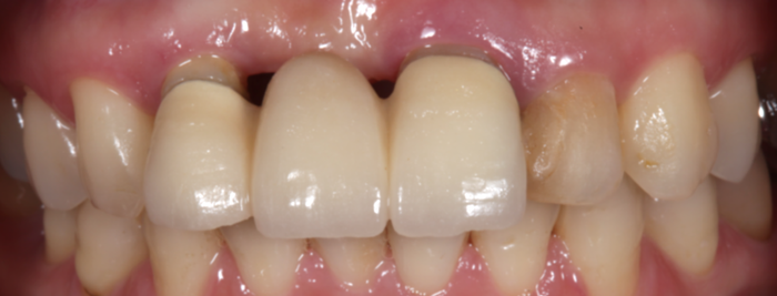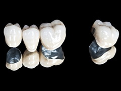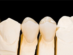 メタルボンドやジルコニアを使用したクラウンと比べて強度が劣るため、臼歯を含んだブリッジには使用できない