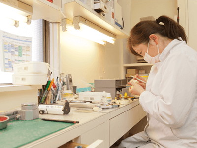 千葉総合歯科稲毛 矯正歯科・予防ケアクリニックでは歯科技工室を併設し、熟練した歯科技工士がレベルの高い技工製作物を院内でつくっています。