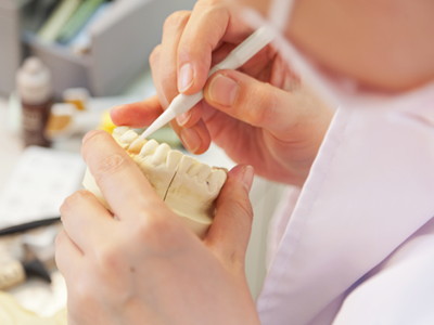 患者さんのお口の中の治療は歯科医師が行います。治療のために装着する被せ物や詰め物、入れ歯などの技工物をつくるのは歯科技工士です。現在ほとんどの歯科医院 では技工士不足、スペース・設備の問題により技工製作物を外部の歯科技工所に依頼します。