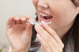 マウスピースに濃度の薄いお薬を患者さん本人に塗ってもらい漂白を行います。