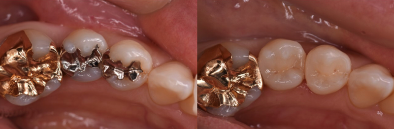 審美性はe-maxクラウンよりも良く、周りの歯が変色していても似たような色を再現することができます。