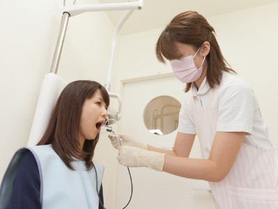 定期検診では口腔ケアのプロフェッショナル、歯科衛生士が歯のクリーニングを行います。毎日のブラッシングでは落としきれない歯と歯の間や歯と歯茎の溝の汚れも徹底的にきれいにしますので、お口のトラブル予防ができます。