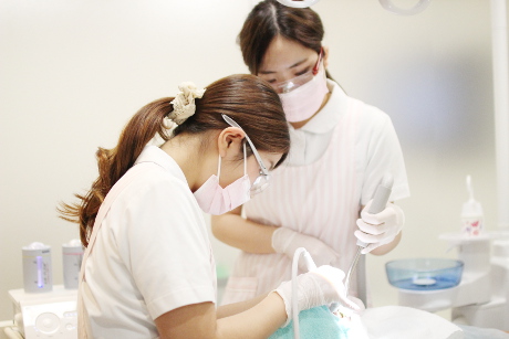毎日の歯みがきでは落としきれない歯と歯茎の溝や、歯と歯の間のプラークや歯石をプロの技で取り除きます。虫歯や歯周病予防に有効です。