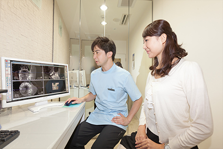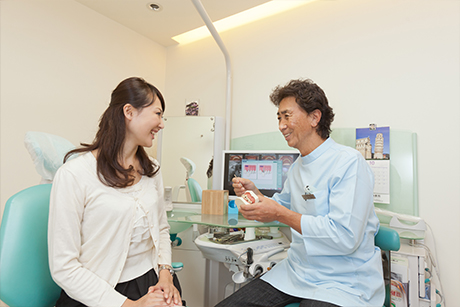 お口の状態により治療方法に複数の選択肢がある場合は、それぞれについて詳しくご説明します。お話をしていく中で患者さんが本当に求めている治療が見えてくるからです。これは私たちだけでなく、患者さんにも当てはまります。初めから、「こうしたい」とはっきりとしたご要望をお持ちの方は少ないのです。