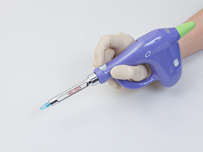 麻酔薬を注射する際、麻酔の注入量にムラがあるとかかる圧力も変化するので痛みを感じやすくなります。人の手による麻酔注射は、なかなか力の入れ方を一定できません。しかし「電動麻酔器」を使用すれば一定の圧力で麻酔液を注入できますので、注射中の痛みを抑えることができます。