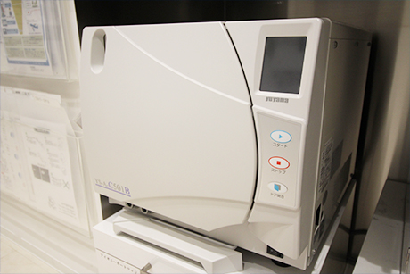 高温洗浄器を使用したあとは、ヨーロッパ最高基準をクリアーしている滅菌器で滅菌・除菌しています。