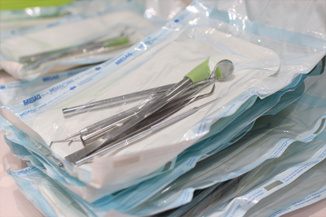ピンセットやミラーなど治療に必要な基本セットは水洗し、超音波洗浄したあと、一つひとつ滅菌パックに入れ個別に滅菌します。