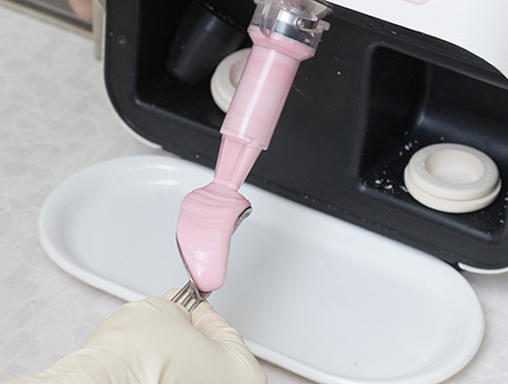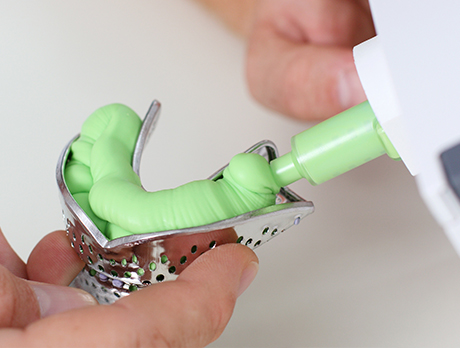 印象採得ともいい、印象材を用いて歯の型を採り、その型から模型をつくり、模型に合わせて人工歯や入れ歯をつくります。保険診療と自由診療ではこの印象材が異なるのです。