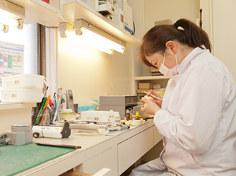 私たちは、歯科医療を通してお口の健康を守り、「いつまでもご自分の歯でお過ごしいただきたい」と願っています。この実現のための取り組みの一つが、虫歯や歯周病などのお口のトラブルの治療精度を高めるため院内技工室を設置していることです。
