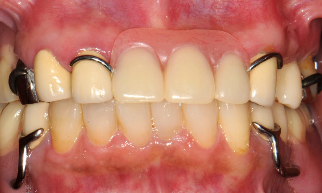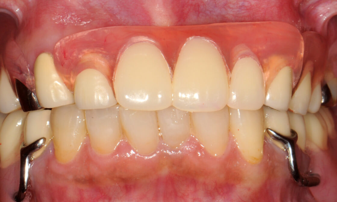 | 患者の症 | 前歯にかかっている入れ歯の金属が気になる。 |