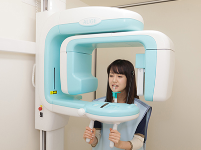 視診できない部分のレントゲン検査を行います。歯根や顎の骨の状態を確認することで、歯並びや親知らずの状態や歯周病についての検査ができます。当院ではデジタルレントゲンを採用していますので、従来のレントゲンの10分の1程度の被曝線量です。顎関節を含めた顎全体を撮るのがパノラマ撮影で、数本の歯を撮るのがデンタル撮影です。また、症例によってはCTを撮ることもあります。