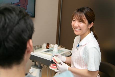 スタッフが笑顔でお迎えします。カウンセリングを大切にしていますので、お口のお悩みは何でもお気軽にご相談ください。