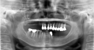BEFORE AFTER 73歳女性/下2本/インプラント埋込手術 【治療内容】 右下第一大臼歯、第二大臼歯のグラつきが…