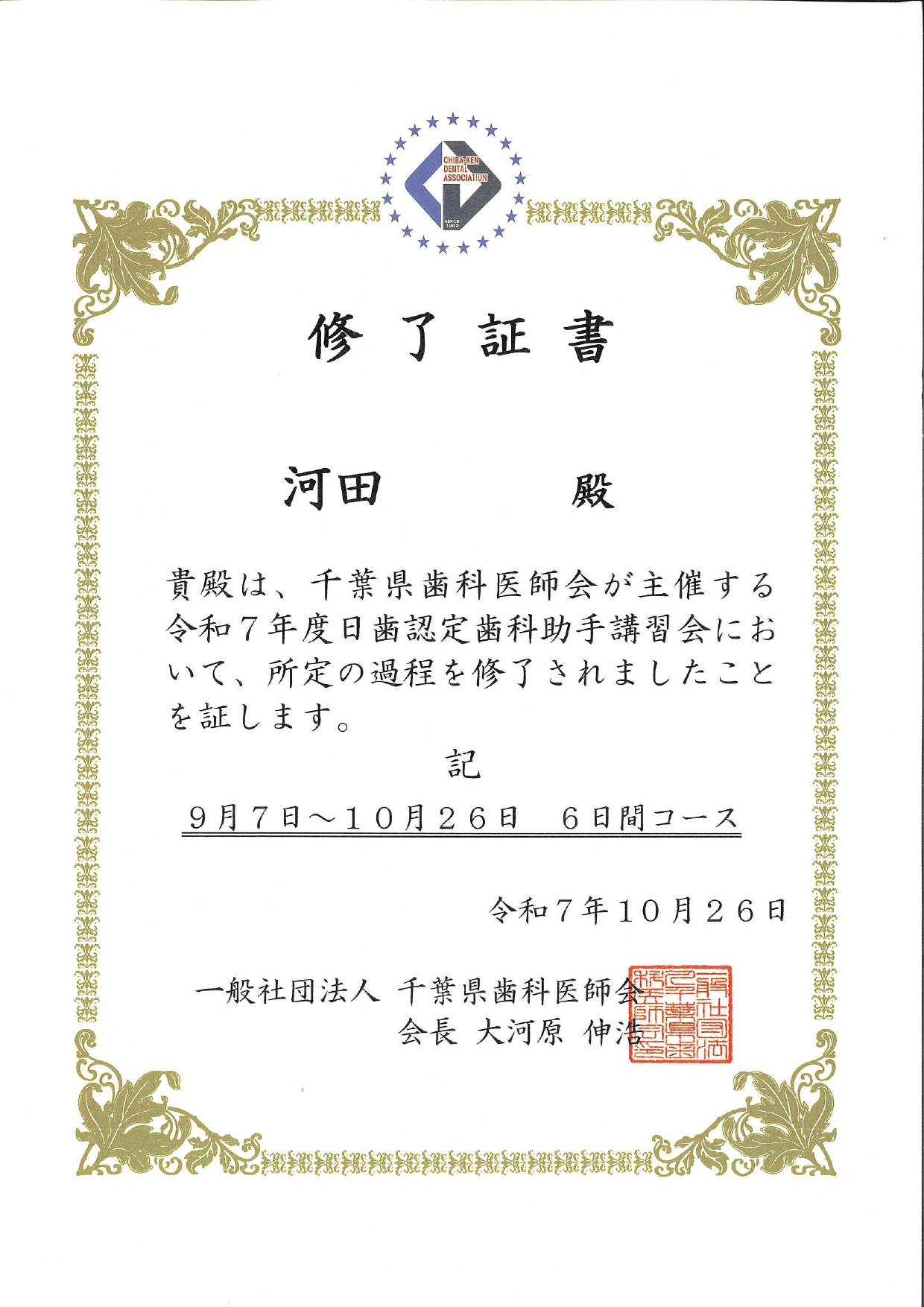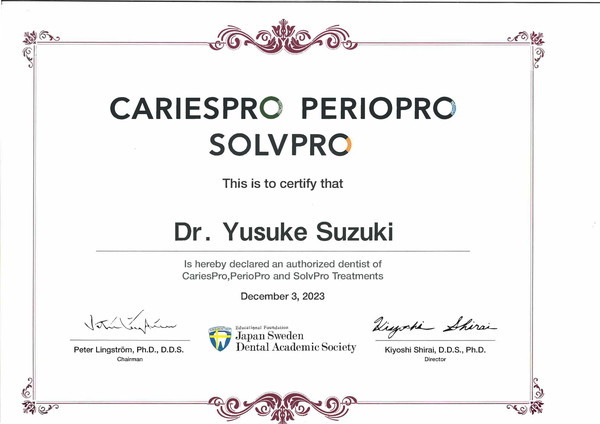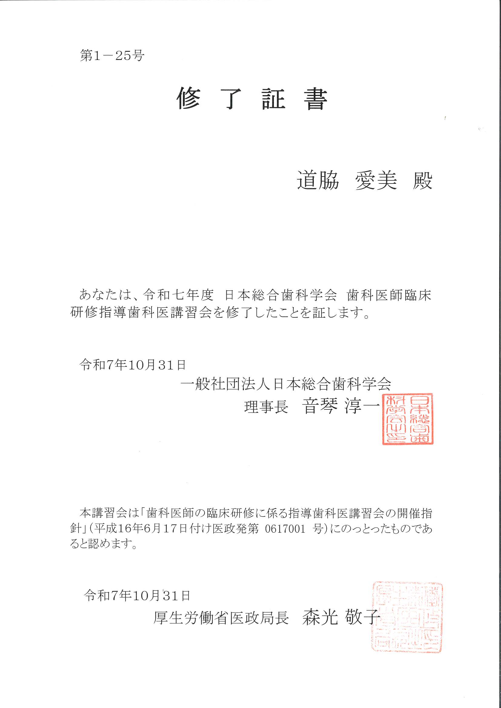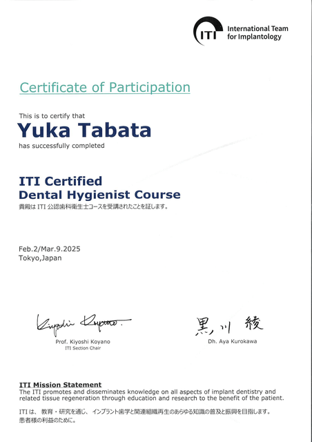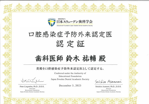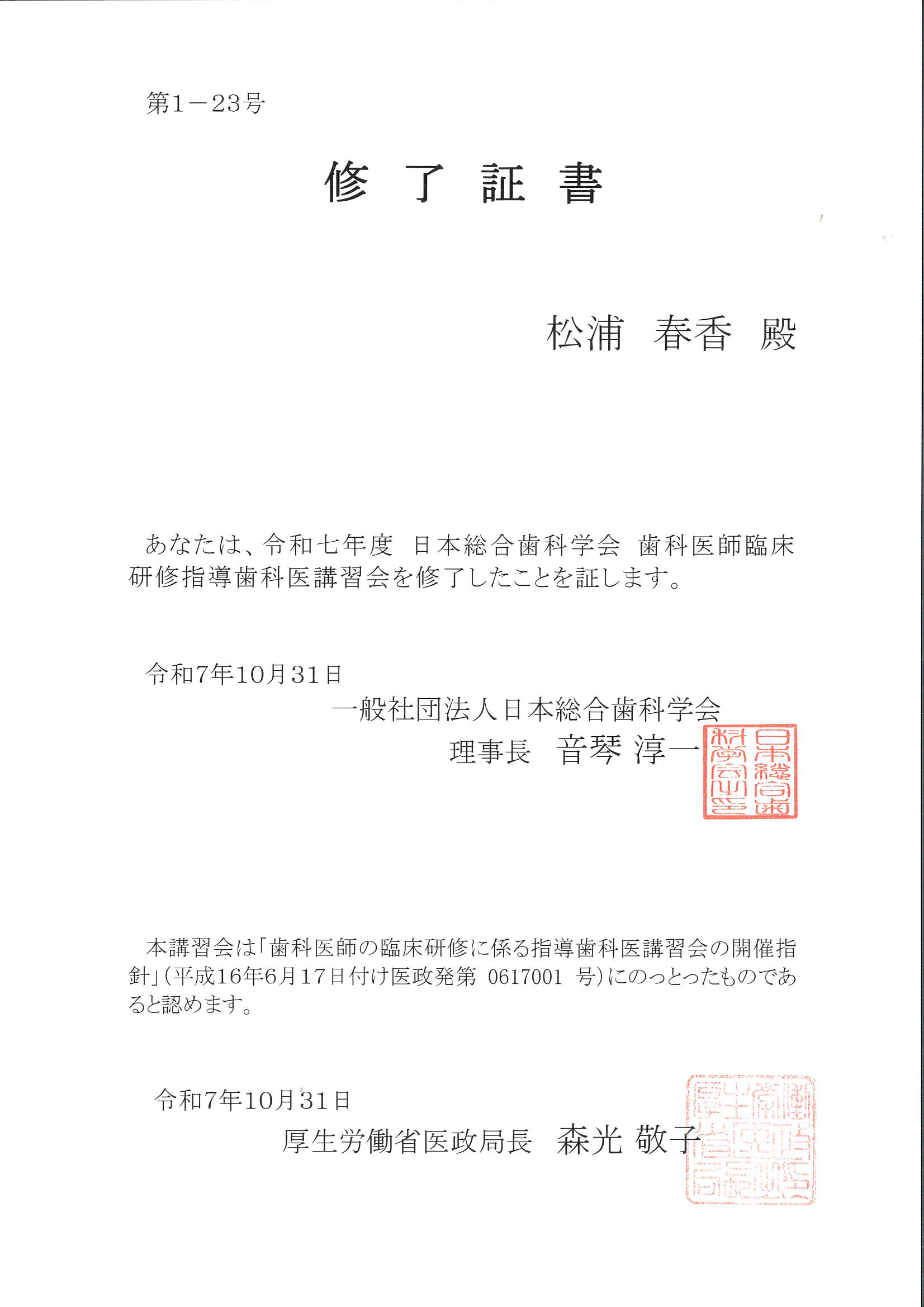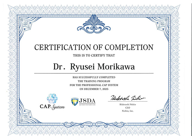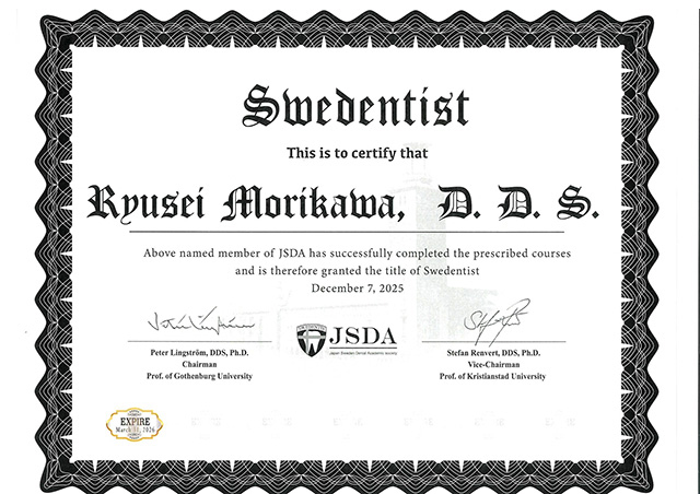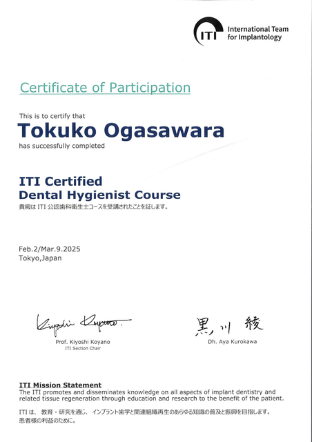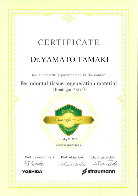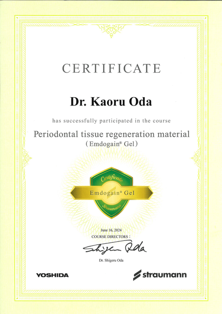 また、日本に帰国後、日本口腔インプラント学会の専門医資格を取得しました。これは、日本国内でインプラント治療に関する高度な技術と専門知識を持つ歯科医師に対し与えられる資格です。さらに、アメリカのAAID(American