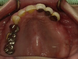 BEFOREAFTER74歳女性/上顎6本 【治療内容】 骨吸収により上顎のブリッジの保存が難しい状態のため...